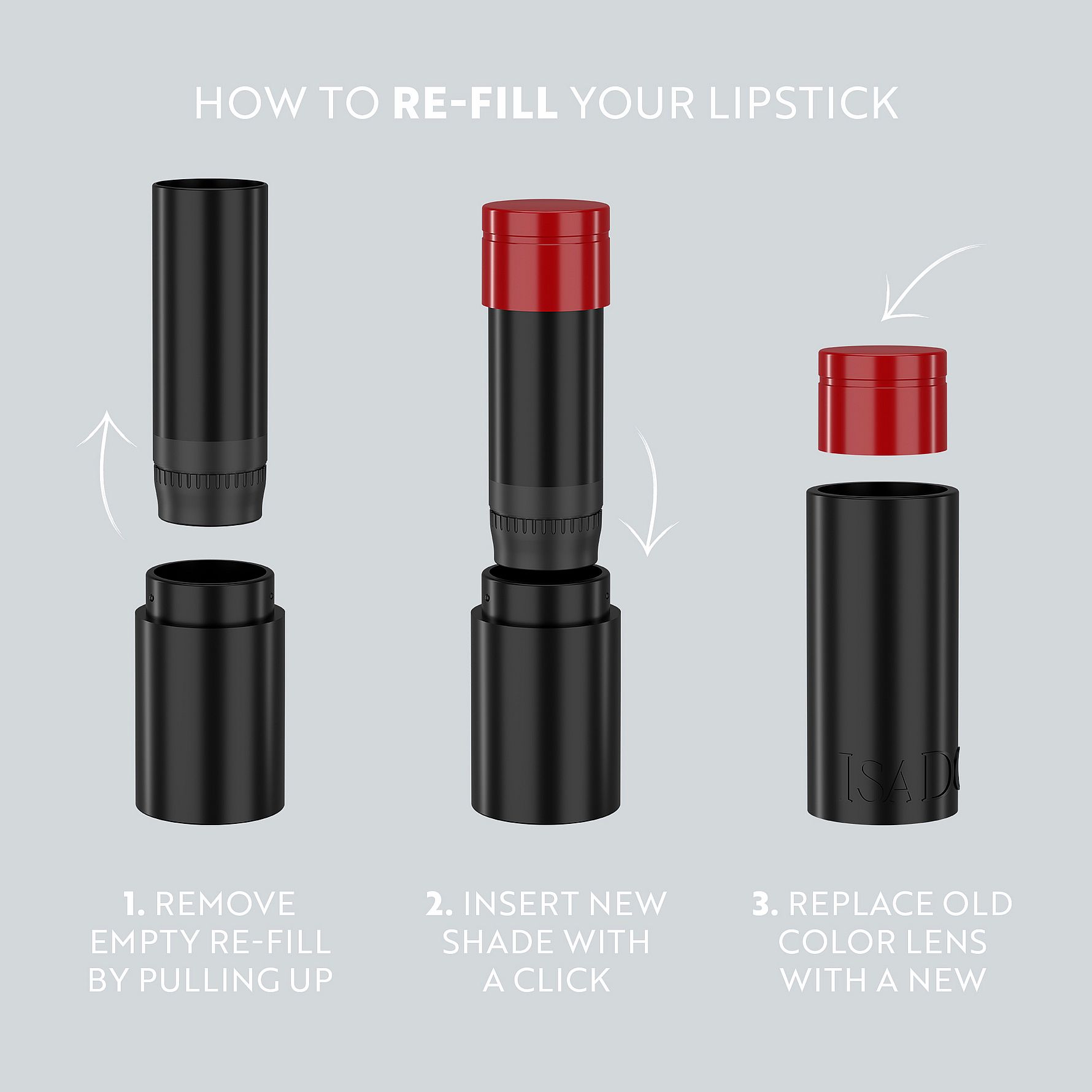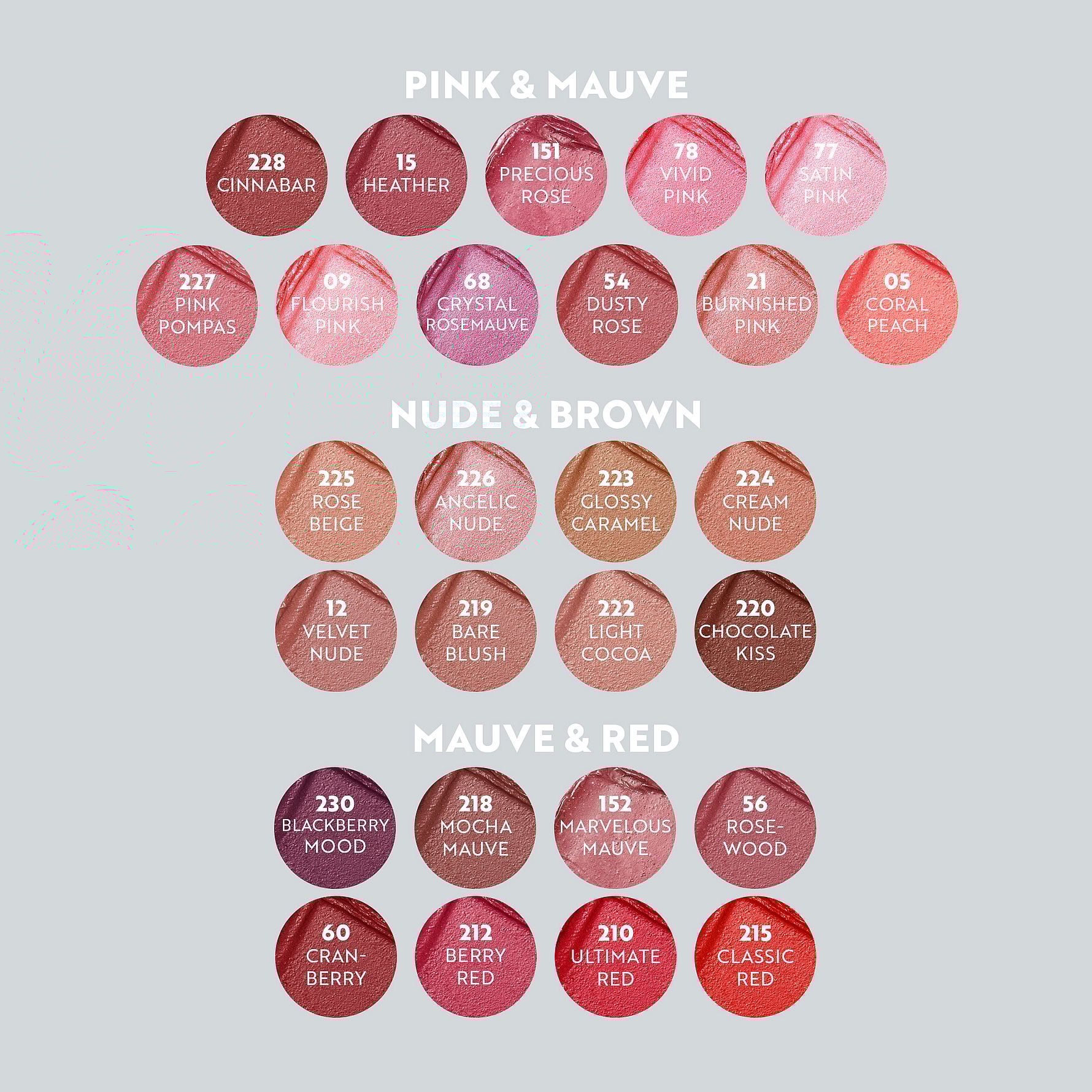 Ikoninen, runsaspigmenttinen ja kosteuttava voidemainen huulipuna. Saatavilla 24 imartelevassa sävyssä, nyt uudelleentäytettävässä pakkauksessa.