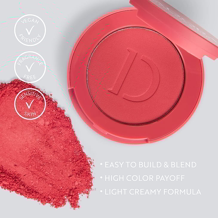 Kevyt, runsaspigmenttinen ja kerrostettava jauhemainen poskipuna.