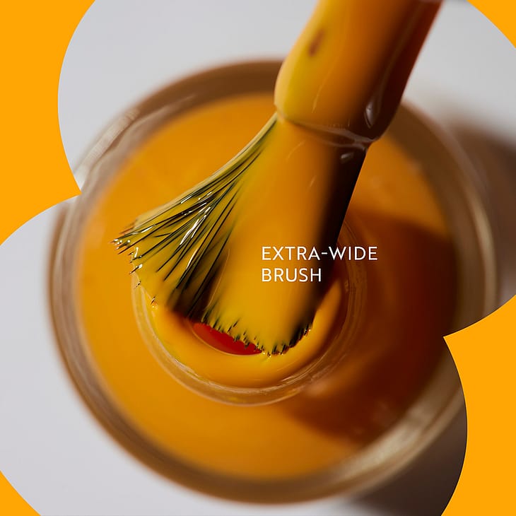 Ainutlaatuinen erittäin leveä siveltimemme on suunniteltu helppoon, juovattomaan, "salonkilaatuiseen" levitykseen. Aloita kynnen keskeltä ja maalaa ohut kerros lakkaa. Anna ensimmäisen kerroksen kuivua, ja levitä sitten toinen kerros.