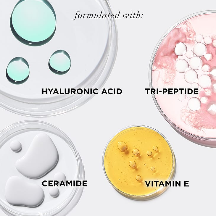 - Sisältää hyaluronihappoa, tri-peptidiä, E-vitamiinia ja keramideja