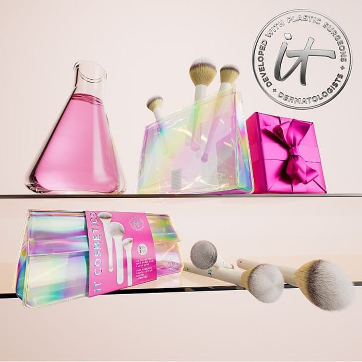 - Luxe Makeup Bag: Säilytä siveltimesi ja meikkitarvikkeesi tyylikkäästi taitettavassa, upeasti holografikuvioidussa kantolaukussa, joka on valmis otettavaksi mukaan matkalle.