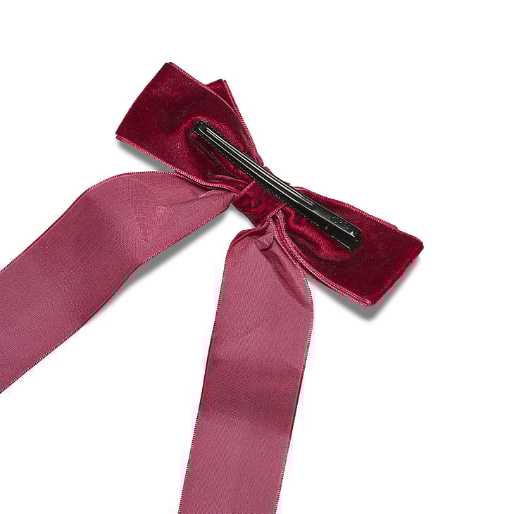Täydennä ilmettäsi punaisella rusetillamme, jossa on kaunis punainen sametti. Tyylikäs musta rusetti lisää hienostuneen mutta leikkisän tunnelman mihin tahansa lookiin. Täydellinen sekä arki- että juhlapukeutumiseen, pienellä klipsillä on helppo kiinnittää rusetti hiuksiin turvallisen ja mukavan istuvuuden takaamiseksi, joka kestää koko päivän. Ajattoman muotoilunsa ansiosta se sopii yhtä hyvin upseihin kuin irtonaisiin hiuksiin.
