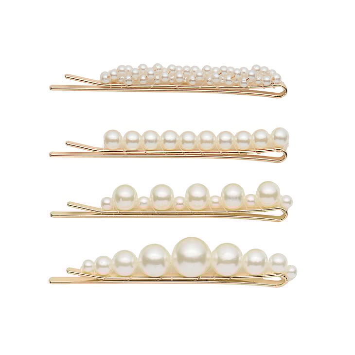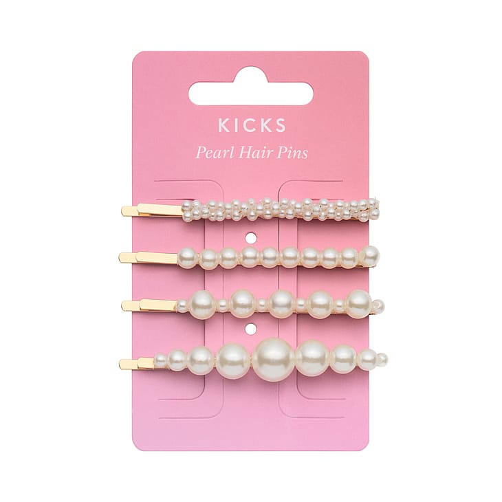 Lisää blingiä hiuksiin käytännöllisillä helmiä sisältävillä hiusneuloilla. Neljän kappaleen pakkaus. Väri: valkoinen.