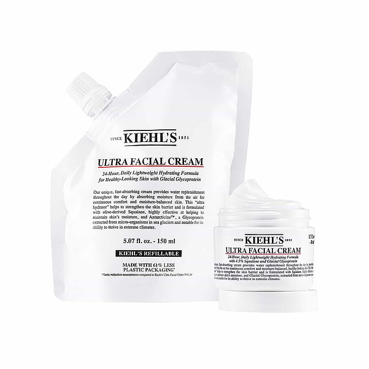 *Muovin vähentyminen vertailussa Kiehl's Ultra Facial Cream 50 ml -pakkaukseen.