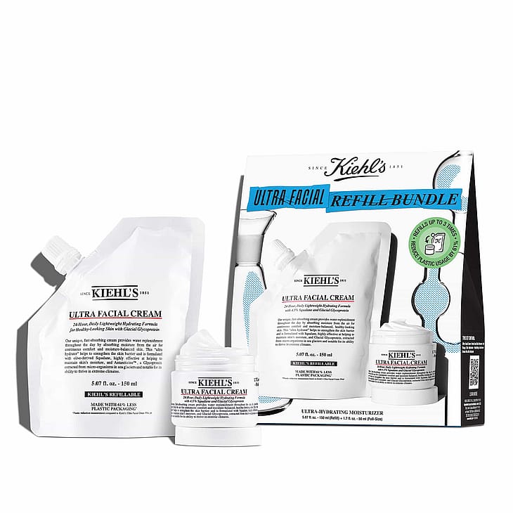 Lahjasetti, jossa on Kiehl'sin ehdottomasti myydyin kasvojen kosteusvoide kahdessa eri koossa. Kosteuta ja tasoita ihoa Kiehl'sin suosituimmalla kasvovoiteella, joka on suunniteltu kaikille ihotyypeille, myös herkälle iholle. Se kosteuttaa jopa 72 tuntia ja parantaa ihon kosteustasapainoa myös ihon kuivimmilla alueilla. Ultrakevyen koostumuksen ansiosta Ultra Facial Cream imeytyy nopeasti jättäen ihon pehmeämmän, sileämmän ja hyvinvoivan näköiseksi. Kasvovoide sisältää jäätiköiden glykoproteiinia ja skvalaania, ja sen kehityksessä on kiinnitetty erityistä huomiota mm. hajusteettomuuteen allergisten reaktioiden aiheuttamisen riskin minimoimiseksi. Kaiken kaikkiaan hellävarainen ja tehokas kasvovoide kaikille ihotyypeille, mikä on tehnyt siitä myös Kiehl'sin ehdottomasti myydyimmän kasvovoiteen.