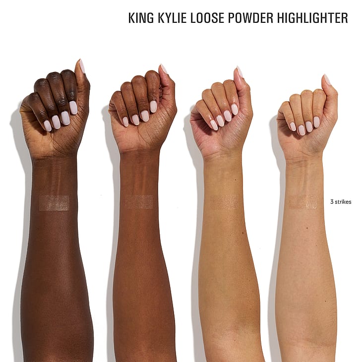 Säihky ja hehku King Kylie Loose Powder Highlighterilla – limited edition -korostuspuuterilla, joka on saanut inspiraationsa Kylien vuoden 2017 alkuperäisestä suosikista. Silkinpehmeä ja erittäin hienojakoinen koostumus on rikastettu valoa heijastavilla helmillä, jotka luovat heleän, helmiäishohtoisen lopputuloksen. Se sulautuu kauniisti ihoon korostamatta tekstuuria, ja sen intensiteettiä voi kerrostaa luonnollisesta hehkusta näyttävään kiiltoon.