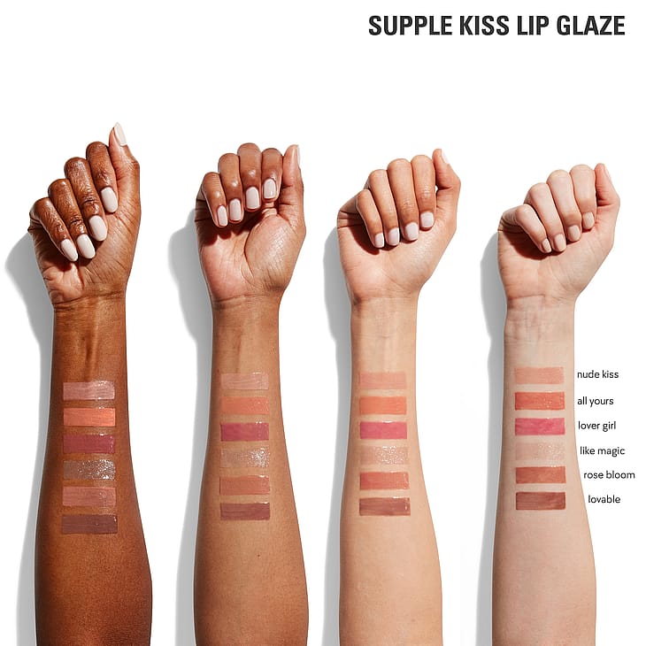 Supple Kiss Lip Glaze tuo kauniin hehkun huulille ja tarjoaa 12 tuntia kosteutusta ja kiiltoa. Tässä Kylie Cosmeticsin kevyessä, vegaanisessa meikkikoostumuksessa on käytetty Bouncy-Wrap Tech -tekniikkaa ja pehmentävää ainesosaseosta, jotka peittävät huulet geelimäisellä kiillolla ja tekevät huulista erityisen kimmoisat ja täyteläiset sekä tietenkin hohtavan kiiltävät. Tämä huulikiilto liukuu vaivattomasti ja tekee väristä täyteläisemmän ja peilimäisen, ja saat huulet, jotka pysyvät kosteutettuina koko päivän. All Yours -sävy on lämpimän persikkaisen pinkki.