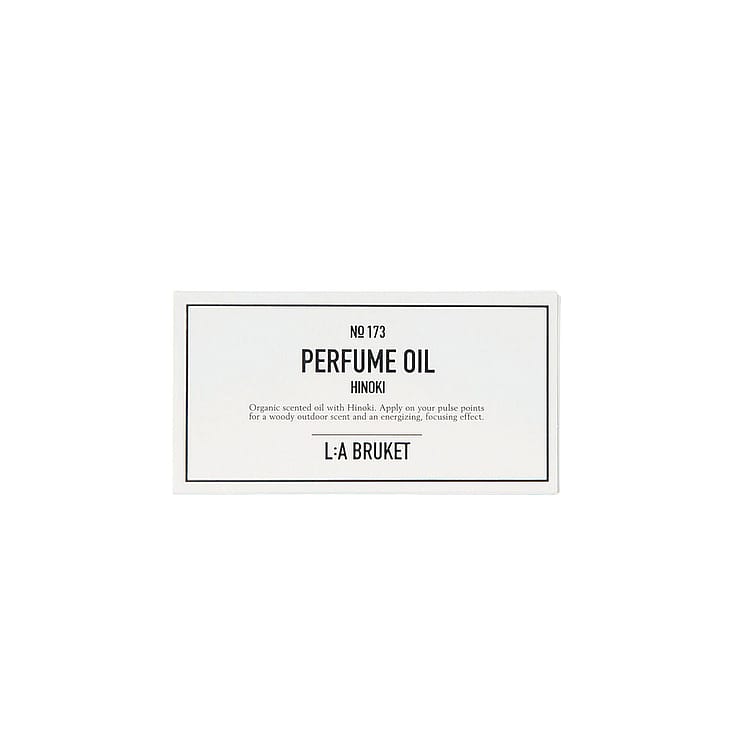L:a Bruket 173 Pefume Oil Hinoki on luonnollisesti tuoksuva öljy hinokilla. Tämä puumainen luonnollinen tuoksu muistuttaa japanilaista sypressiä ja pysyy iholla jopa neljä tuntia. Hinokin tuoksulla sanotaan olevan energiaa antavia ominaisuuksia.
