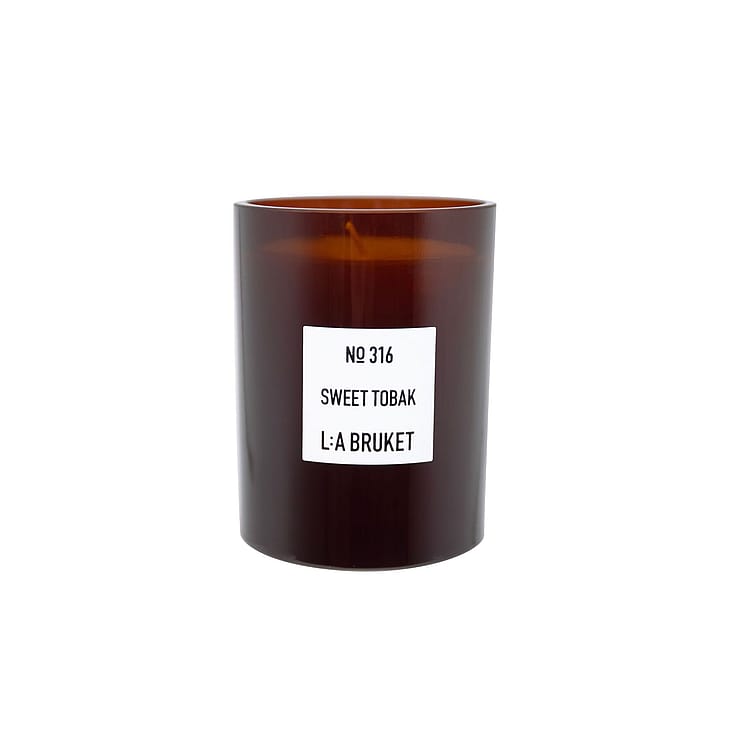 Tuoksukynttilä Sweet Tobak on valmistettu ruotsalaisesta, kasvipohjaisesta vahaseoksesta, joka on suunniteltu sulamaan tasaisesti. Sen tuoksu tarjoaa rikkaan, ympäröivän kokemuksen ja täyttää tilasi pitkäkestoisilla aromeilla. Kynttilä on pakattu käsin puristettuun meripihkanväriseen lasiastiaan, jossa on ekologisesti viljelty puuvillasydän, ja se toimitetaan ylellisessä, kierrätettävässä pahvipakkauksessa. Aiemmin nimeltään Tabac – sama tuoksu.