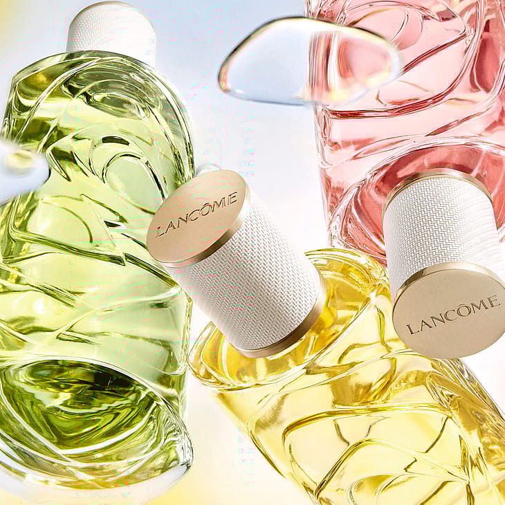 Les Ô -pullon puhtaan linjakas muotoilu korostaa kunkin tuoksun eloisia värejä. Ikonisen Lancôme Rose Agora -kuvion ansiosta, joka on kaiverrettu lasiin, pullo on yhtä lailla kaunis esine kuin tuhansien positiivisten tunteiden pisaroiden säilytyspaikka!