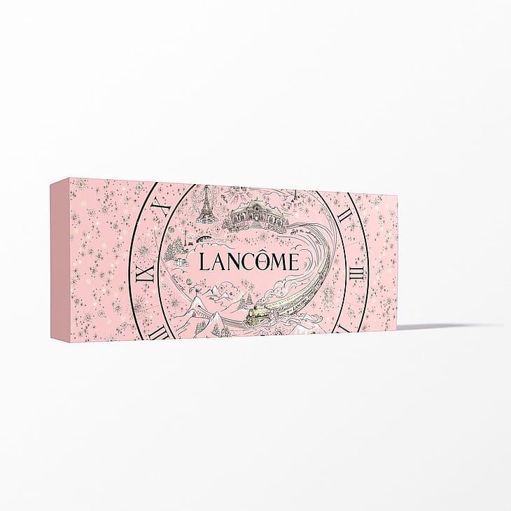 Lähde ainutlaatuiselle matkalle Pariisista Lykkeen, brändimme matkakohteeseen vuodesta 1935 lähtien, ja juhlista 90 vuoden taikaa tänä jouluna. Lancôme esittelee ranskalaisen taiteilijan Safia Ouaresin suunnitteleman lahjamalliston, ja sen ikonisen Lancômen vaaleanpunaisen värin. Kellon lähestyessä keskiyötä Lancôme Express aloittaa legendaarisen à la française -matkansa ja vie juhlatunnelman lumoavaan maisemaan. Se on festivaali taianomaisessa satumaassa, joka juhlistaa vuoden unohtumattominta matkaa. Jokaisessa pakkauksessa on kauneuden jalokivi, joka saa sinut säihkymään koko juhlakauden ajan. Lahjapakkauksen sisältö: