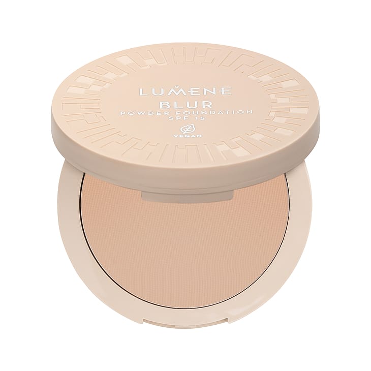 Blur Pitkäkestoinen meikkipuuteri SK15 saa ihon näyttämään hetkessä tasaisemmalta ja virheettömältä. Meikkipuuterin vegaaninen koostumus sisältää kirkastavaa pohjoista lakkaa ja kosteuttavaa kapseloitua hyaluronihappoa. Miellyttävältä tuntuva pehmeä hajusteeton koostumus ei kuivata ihoa. Se levittyy iholle tasaisesti luoden mattapintaisen lopputuloksen. Sopii käytettäväksi yksinään meikkivoiteen tapaan, meikkivoiteen päällä tai meikin korjailuun pitkin päivää. Puuterirasia on kierrätettävä ja osittain tehty kierrätetyistä materiaaleista. Valmistettu Suomessa.