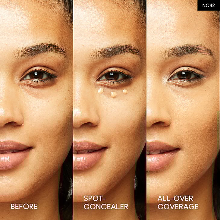 Napsauta, napauta ja menoksi! Olitpa sitten missä tahansa, voit piilottaa ja korjata helposti hallittavalla kasvokynällämme, joka ei jätä juovia tai paakkuunnu. Tämä kaksitoiminen peite- ja meikkivoidekynä on tahraamaton ja vedenkestävä. Se kestää mukavasti 36 tuntia ja levittyy täydellisesti. Se peittää myös silmänaluset, punoituksen ja näppylät tasoittaen samalla ihon sävyä. E-vitamiinia, hyaluronihappoa ja kofeiinia sisältävä maskiystävällinen koostumus levittyy ja sekoittuu helposti. Saatavana 33 joustavaa kerrostettavaa sävyä keskivahvasta täyteläiseen, lopputuloksena luonnollinen mattapinta – tämä kevyt ja kosteuttava kynä sopii monipuoliseen käyttöön kaikille.