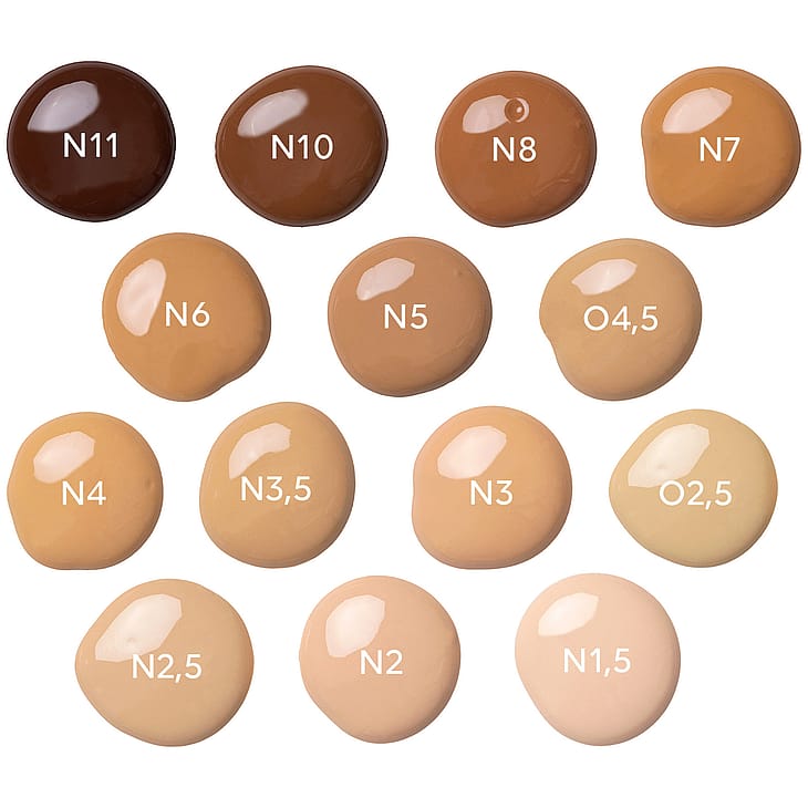 Cica Buildable Base Foundation on meikkivoide, jonka peittävyyttä voidaan räätälöidä optimaalisesti koko päivän ajaksi. Helposti levitettävää koostumusta voidaan kerrostaa hehkuvasta ja kuultavasta pohjasta täysin peittävään ja täydelliseen pohjustukseen, joka loihtii pois pienet virheet ja epätasaisuudet. Se pysyy paikallaan koko päivän ihoa tukkimatta. Koostumus sisältää niasiiniamidia, joka ajan myötä lisää ihon kimmoisuutta ja skvalaania, joka vahvistaa ihon suojakerrosta. E-vitamiini yhdessä antioksidanttien kanssa suojaa vapailta radikaaleilta ja rauhoittaa ihoa. Saatavana 14 sävyä. Meikkivoide, jossa on räätälöitävä peittävyysaste. Antaa iholle luonnollista hehkua. Vahvistaa ihon suojakerrosta ja suojaa vapailta radikaaleilta. "N1,5 - Erittäin vaalea iho, jossa viileä pohjasävyN2 - Erittäin vaalea iho, jossa lämmin / neutraali pohjasävy02,5 - Vaalea iho, jossa oliivi pohjasävyN2,5 - Vaalea iho, jossa neutraali pohjasävyN3 - Vaalea iho, jossa lämmin pohjasävyN3,5 - Vaalea tai keskivaalea iho, jossa neutraali pohjasävyN4 - Vaalea tai keskivaalea iho, jossa lämmin pohjasävyO4,5 - Vaalea tai keskivaalea iho, jossa oliivi pohjasävyN5 - Keskivaalea iho, jossa lämmin / neutraali pohjasävyN6 - Keskivaalea iho, jossa lämmin pohjasävyN7 - Keskivaalea tai tumma iho, jossa lämmin pohjasävyN8 - Keskivaalea tai tumma iho, jossa lämmin / neutraali pohjasävyN10 - Keskivaalea tai tumma iho, jossa neutraali pohjasävyN11 - Keskivaalea tai tumma iho, jossa neutraali / kylmä pohjasävy"