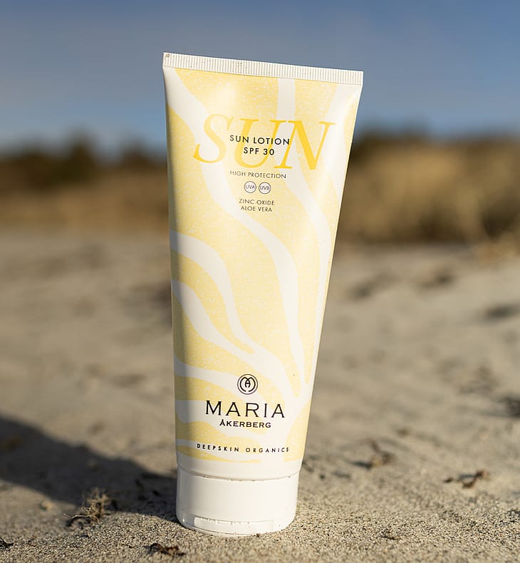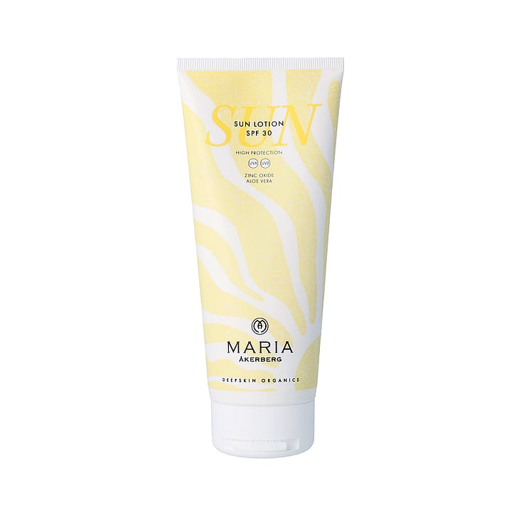 Sun Lotion SPF 30 on luonnollinen, vedenkestävä aurinkosuojavoide kaikille ihotyypeille, kasvoille ja vartalolle sekä lapsille. Se antaa laajakirjoisen suojan UVA- ja UVB-säteitä vastaan ja auttaa ehkäisemään auringon aiheuttamia vaurioita ja ihon ennenaikaista vanhenemista ei-nanokokoisen sinkkioksidin avulla - fysikaalinen ja erittäin ihoystävällinen aurinkosuoja. Tämä luonnollinen mineraali muodostaa ihon pinnalle näkymättömän suojakerroksen, joka heijastaa auringonsäteitä pois ilman, että ne imeytyvät kehoon - eli suoja toimii heti levittämisen jälkeen. Koska iho voi reagoida luonnollisesti liialliseen altistumiseen, kuten punoitukseen, se auttaa sinua myös kuuntelemaan kehosi signaaleja ja suojautumaan paremmin auringossa. Tuotetta on rikastettu kosteuttavalla kylmäpuristetulla Jojobaöljyllä, antioksidanttipitoisella pellavansiemenöljyllä sekä rauhoittavalla ja viilentävällä Aloe Veralla, jotta ihosi saa parhaan mahdollisen suojan ja hoidon aurinkoisina päivinä. Pongamiaöljyllä, joka tunnetaan myös nimellä Karanjaöljy, on luonnollisia UV-suojaavia ominaisuuksia, jotka tehostavat aurinkosuojaa. Runsaasti antioksidantteja sisältävä öljy auttaa suojaamaan ihoa hapettumisstressiltä ja vahvistaa ihoestettä. Sun Lotion SPF 30 sisältää myös luonnollista karoteenia, jota uutetaan porkkanasta ja joka on erityisen hyödyllistä kuivalle iholle ja ekseemalle. Karoteeni torjuu vapaita radikaaleja, tukee solujen uusiutumista ja auttaa antamaan iholle tasaisen ja pitkäkestoisen rusketuksen. Kaikki MARIA ÅKERBERGin aurinkosuojatuotteet ovat 100-prosenttisesti fysikaalisia, titaanidioksidiin tai sinkkioksidiin perustuvia, täysin luonnollisia tuotteita, jotka eivät sisällä kemiallisia aurinkosuodattimia, nanohiukkasia tai mikromuoveja. Ne ovat Reef Safe -suojattuja, mikä tarkoittaa, että ne eivät vaikuta haitallisesti valtameriin, järviin tai koralliriuttoihin.