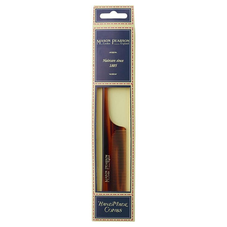 Mason Pearson C3 'Tail Comb' on käsintehty Sveitsissä yhdestä laadukkaasta selluloidikappaleesta perinteisiä tekniikoita käyttäen. Tämä johtaa hienosti terävöitettyihin hampaisiin ja pyöristettyihin kärkiin, jotka takaavat hellävaraisen kosketuksen sekä hiuksillesi että päänahallesi.