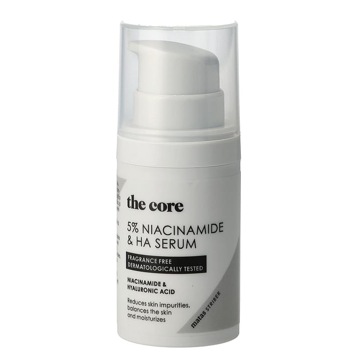 The Core 5% Niacinamid & HA Serum on hajusteeton ja vähentää epäpuhtauksia, kosteuttaa sekä luo tasapainoa iholle. Sisältää mm. EPS Seaglow, joka antaa hehkua, samalla kun allantoiini rauhoittaa ja ehkäisee ärsytystä.