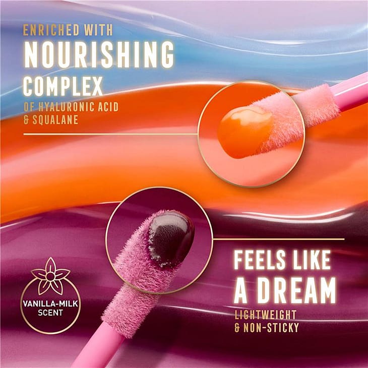 Kiiltävä geelimäinen koostumus antaa välittömän hehkun ja jättää kevyen värijäljen, joka kestää, samalla kun se tuntuu ilmavalta eikä tahmaa.