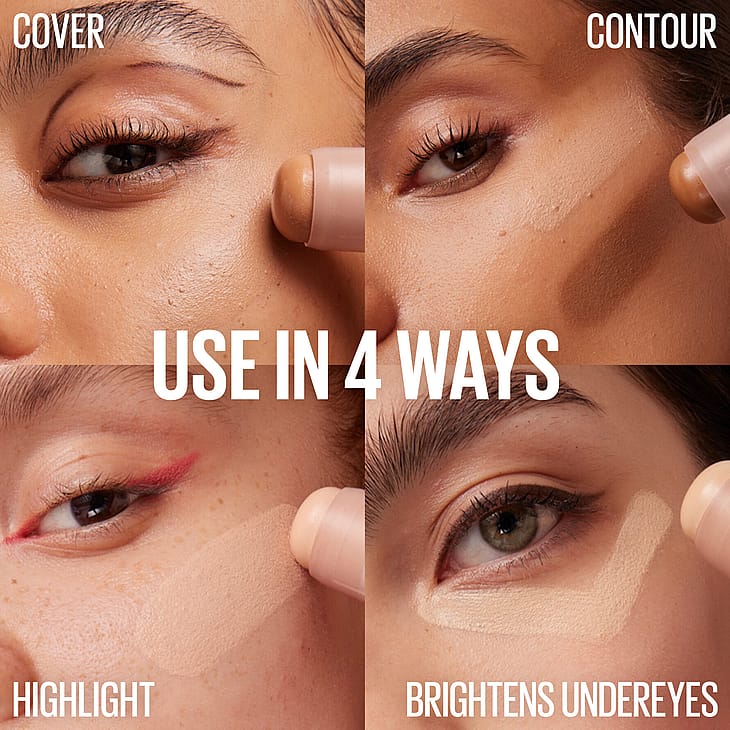Maybelline New York Lifter Stix Multi-Use Face Stick on voidemainen, monikäyttöinen meikkipuikko, jolla voit korostaa piirteitäsi ja luoda luonnolliselta näyttävän muotoillun lookin. Pyyhkäise iholle peittääksesi tummia silmänalusia ja valaisemaan silmänympärysihoa tai käytä korostukseen ja muotoiluun. Koostumus sisältää karpalonsiemenöljyä ja se on helppo häivyttää iholle.
