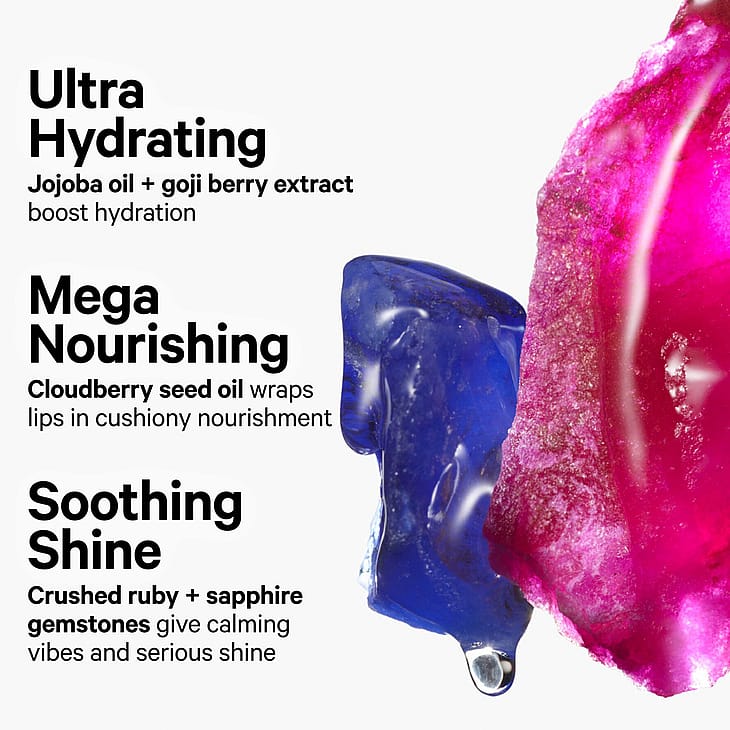 Puhdas, kiiltävä, tarttumaton huulikiilto, joka on valmistettu vitamiinirikkaista öljyistä, joka antaa ravitsevan kosteutuksen ja mehukkaan, kevyen läpikuulaan värin. Kosteuttaa kuin öljy. Loistaa kuin kiilto. Tämä pehmustava hybridikoostumus on valmistettu ravitsevasta jojobaöljystä ja goji-marjauutteesta, jotta huulet pysyvät pehmeinä ja kosteutettuina, eivät koskaan kuivina tai tahmeina. Siinä on hienovarainen luonnollinen vanilja-bergamotin tuoksu ja (kirjaimellisesti) murskattuja jalokiviä, jotka luovat loistokkaan kiillon yhdellä pyyhkäisyllä. 100% vegaani.
