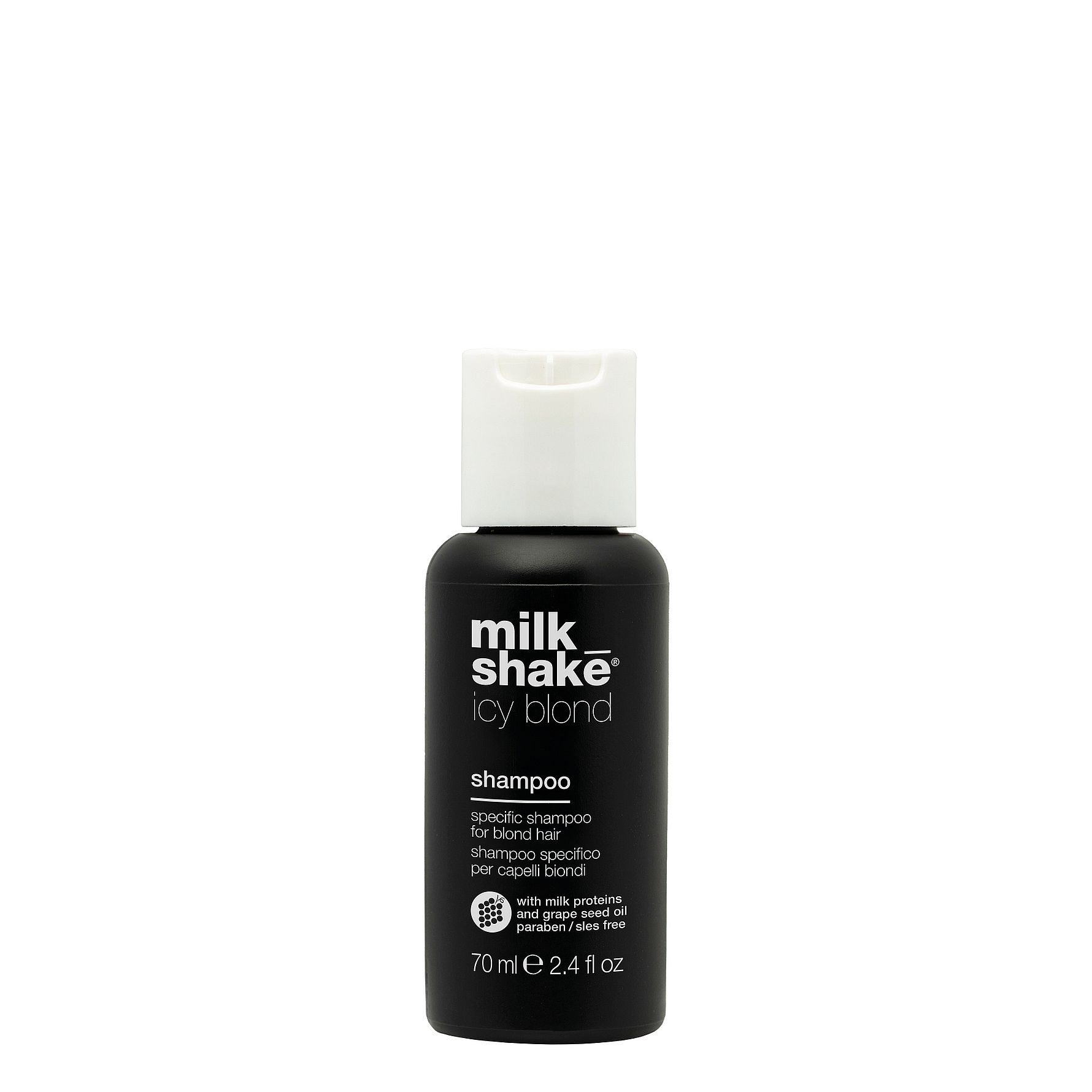 Puhdistaa hiukset hellävaraisesti sisältäen erityisen mustan pigmentin, joka neutraloi keltaisia tai oransseja sävyjä vaaleissa tai vaalennetuissa hiuksissa antaen tuhkaisen sävyn. Käyttö: Levitä tasaisesti kosteisiin hiuksiin, anna vaikuttaa muutaman minuutin ajan ja huuhtele. Tehokkaamman tuloksen saamiseksi anna vaikuttaa muutaman minuutin lisää. Icy blond -tuotteet sisältäv ät pigmenttejä, jotka voivat antaa erittäin voimakkaan lopputuloksen erityisesti huokoisille hiuksille; kun haluttu tulos on saavutettu, vaihda shampooa eri tuotteeseen tuloksen ylläpitämiseksi. Jatka icy blond -hoitoaineen käytöllä.