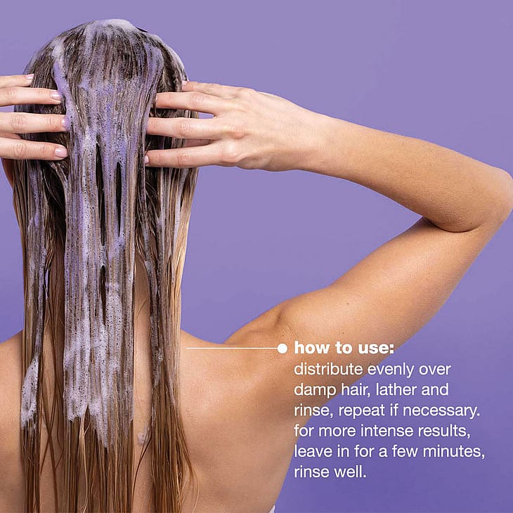 Hellävarainen puhdistusaine, joka neutraloi ei-toivottuja keltaisia ja kultaisia sävyjä valkoisissa, harmaissa, vaaleissa tai vaalennetuissa hiuksissa erityisen violetin pigmentin avulla. Rikastettu maitoproteiineilla ja luomuhedelmäuutteilla, jotka tekevät hiuksista kiiltävät, pehmeät ja elinvoimaiset. Käyttö: levitä kosteisiin hiuksiin, vaahdota ja huuhtele. Toista tarvittaessa. Parhaan tuloksen saavuttamiseksi anna vaikuttaa muutama minuutti.