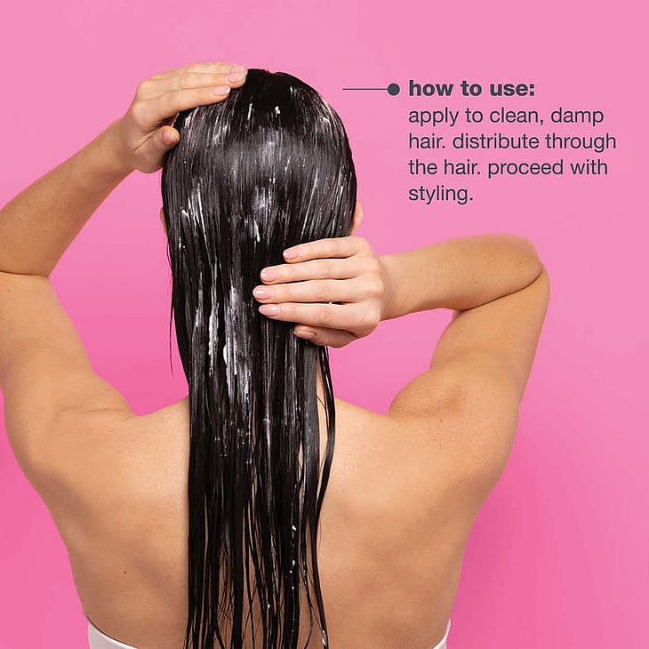 Ravista hyvin ja pidä pullo ylösalaisin annostellaksesi. Levitä puhtaisiin kosteisiin hiuksiin, sitten muotoile.