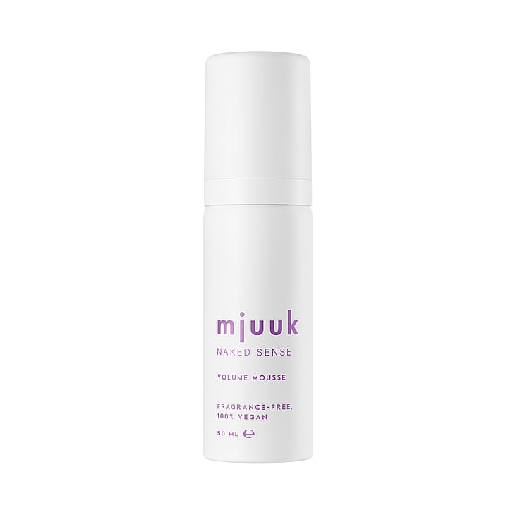 MJUUK Naked Sense Fragrance-Free Volume Mousse -muotovaahto antaa hiuksille volyymia ja tekee niistä helpommin käsiteltävät ilman, että ne tuntuvat raskailta. Hiuksista tulee kimmoisat ja elinvoimaiset tyvestä latvaan. Tuote sisältää myös lämpösuojan, joten sitä voi käyttää suojaamaan hiuksia kuumien muotoilulaitteiden aiheuttamilta vaurioilta. Koostumus on 100 % vegaaninen, hajusteeton ja silikoniton. Pakkaus on kierrätettävä.
