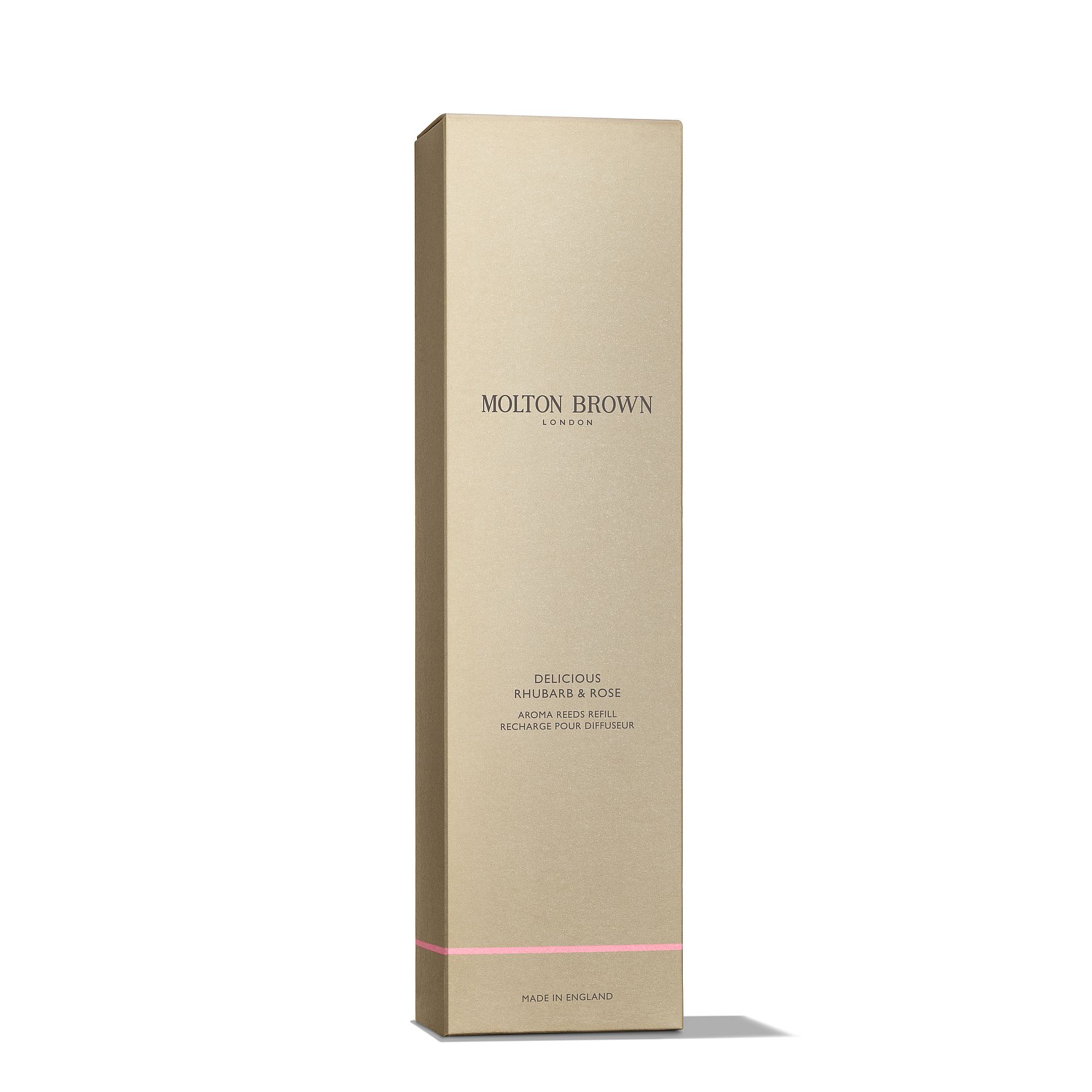 Molton Brown Delicious Rhubarb & Rose Aroma Reeds Refill -uudelleentäyttöpakkauksella voit täyttää tuoksutikkujen öljyn ja nauttia edelleen eloisan raparperin, täyteläisen vaniljan ja raikkaan greipin vastustamattomasta tuoksusta. Molton Brown -tuoksutikut ovat elegantti sisustusdetalji, joka levittää kotiisi kutsuvien tuoksujen sinfonian. Viimeistele elämys käyttämällä yhdessä yhteensopivien Molton Brown -tuoksukynttilöiden kanssa.