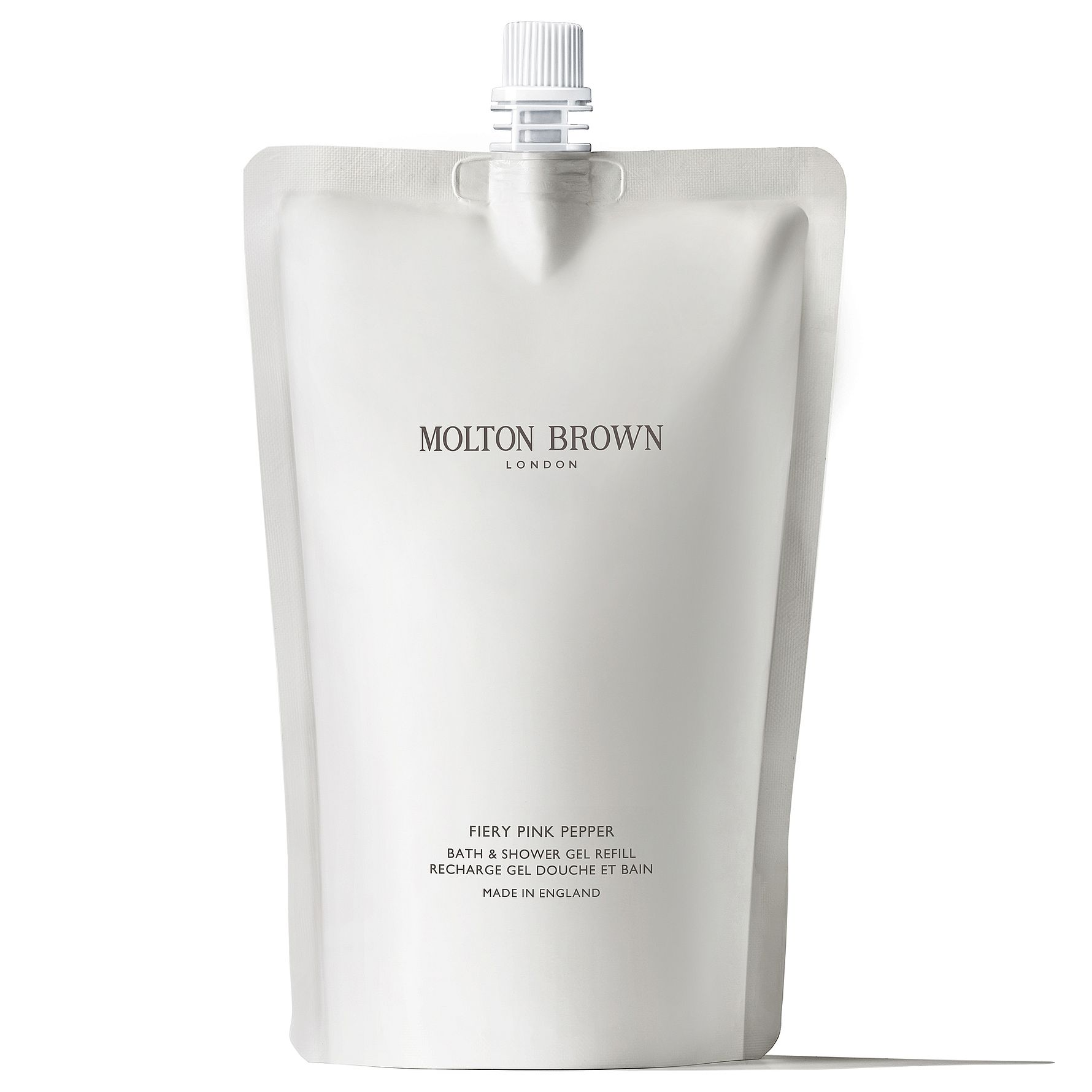Refill. Molton Brown Fiery Pink Pepper Bath & Shower Gel antaa kylpy- ja suihkurituaalillesi ripauksen ylellisyyttä. Sisältää mausteisen roseepippurin, eloisan inkiväärin ja täyteläisen patsulin eloisia nuotteja. Aistillinen suihkugeeli puhdistaa ihon ja antaa sille ihanan tuoksun. Tällä uudelleentäyttöpakkauksella täytät Molton Brown -pullosi uudelleen. Sisältää 63 % vähemmän muovia kuin tavalliset Molton Brown -pullot. Käytä yhdessä yhteensopivan Molton Brown -vartaloemulsion kanssa viimeistelläksesi tuoksuelämyksen.