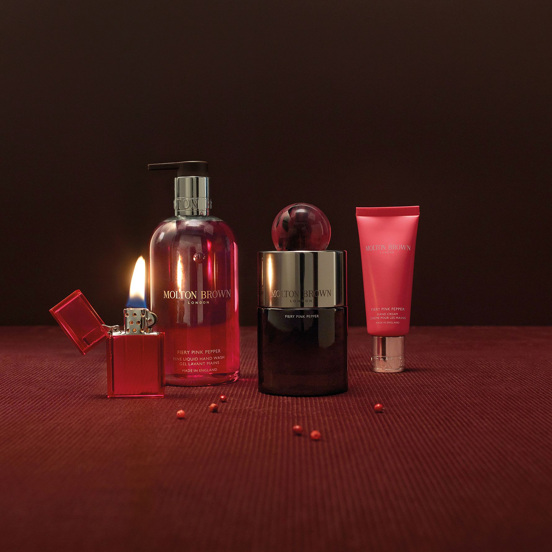 Molton Brown Fiery Pink Pepper Fine Liquid Hand Wash kosteuttava käsisaippua antaa ylellisen ja miellyttävän puhdistavan elämyksen. Sisältää mausteisen roseepippurin, lämpimän inkiväärin ja täyteläisen patsulin eloisia nuotteja antaen iholle virkistävän, aromaattisen tuoksun. Käytä yhdessä yhteensopivan Molton Brown -käsiemulsion kanssa vahvistaaksesi ihanaa puuvivahteista ja mausteista tuoksua.