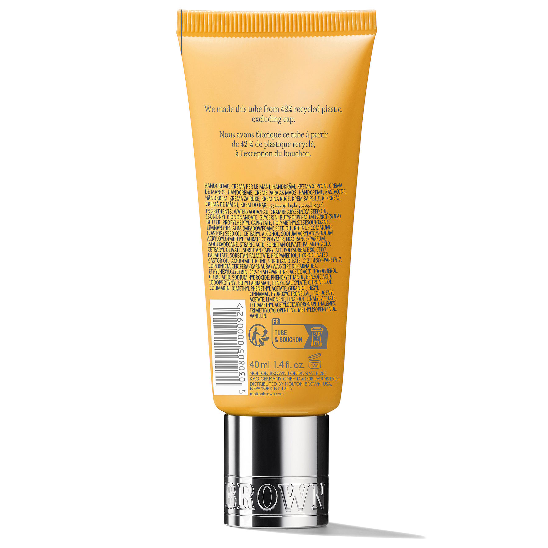 Molton Brown Flora Luminare Hand Cream ravitseva ja kosteuttava käsivoide sisältää appelsiininkukan, kukkaisen jasmiinin ja pehmeän vaniljan aurinkoisia nuotteja. Sisältää ihoa hoitavia ainesosia, jotka kosteuttavat, ravitsevat ja suojaavat käsiä. Käytä yhdessä yhteensopivan Molton Brown -käsisaippuan kanssa vahvistaaksesi lämpimiä ja eloisia tuoksunuotteja.