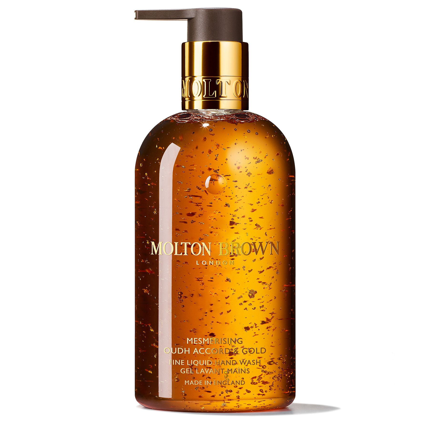 Molton Brown Mesmerising Oudh Accord & Gold Fine Liquid Hand Wash virkistävä käsisaippua antaa ylellisen ja miellyttävän puhdistavan elämyksen. Sisältää raikkaan bergamotin, savuisen mustan teen ja hunajaisen hartsin täyteläisiä nuotteja. Puhdistaa, kosteuttaa ja antaa iholle virkistävän aromaattisen tuoksun. Käytä yhdessä yhteensopivan Molton Brown -käsiemulsion kanssa vahvistaaksesi täyteläistä, lämmintä tuoksua.