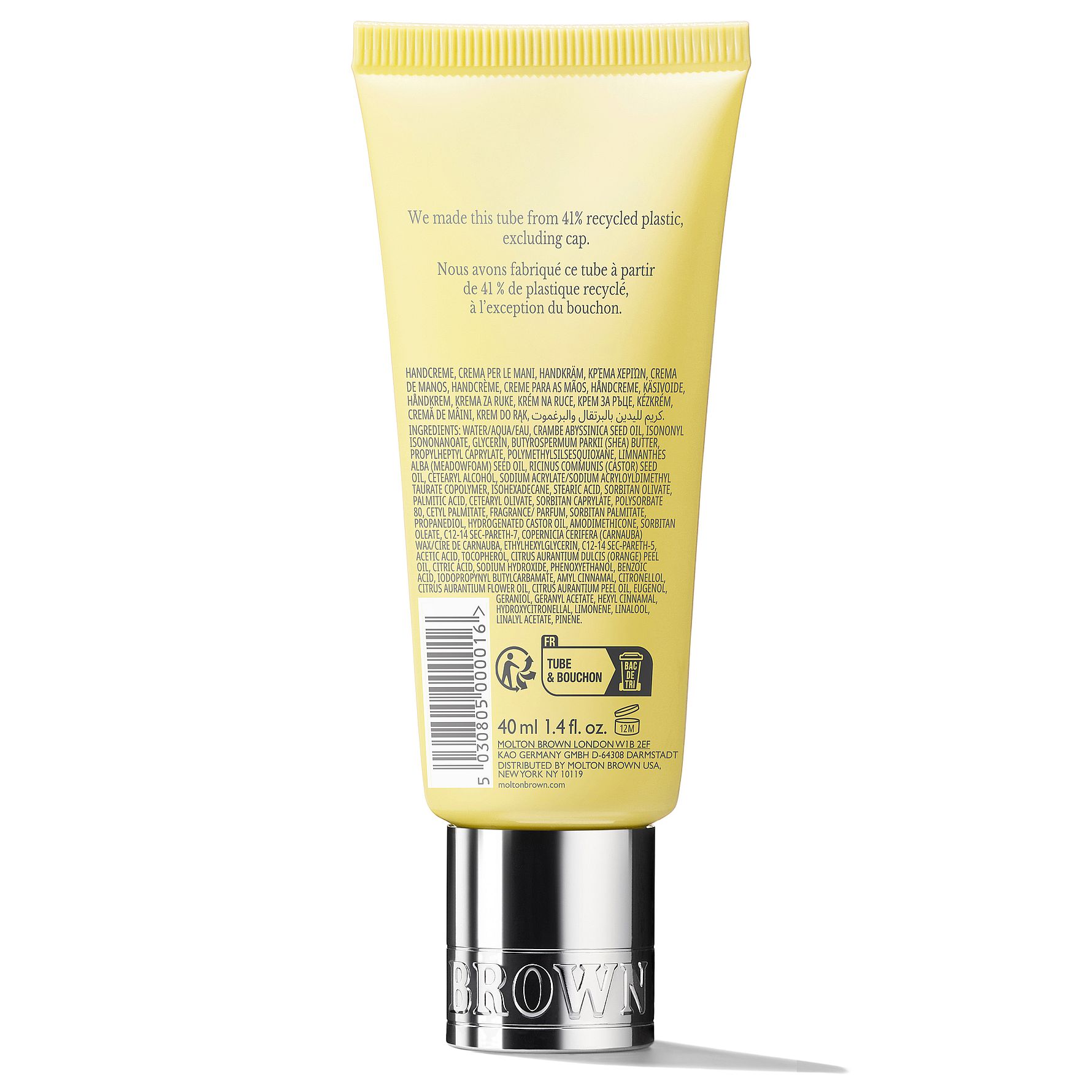 Molton Brown Orange & Bergamot Hand Cream ravitseva ja kosteuttava käsivoide sisältää raikkaan appelsiinin, kukkivan nerolin ja viipyvän myskin virkistäviä ja eloisia nuotteja. Sisältää ihoa hoitavia ainesosia, jotka kosteuttavat, ravitsevat ja suojaavat käsiä. Käytä yhdessä yhteensopivan Molton Brown -käsisaippuan kanssa vahvistaaksesi eloisaa sitrustuoksua.