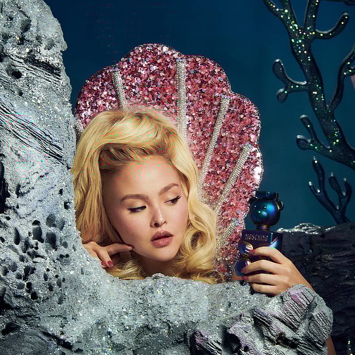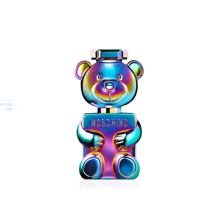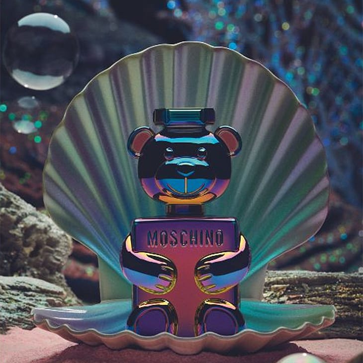 Tuoksupullolla on Moschinon ikoninen nallekarhudesign, jonka sävy ilmentää merenpohjassa lepäävää tahitilaista helmiäistä.