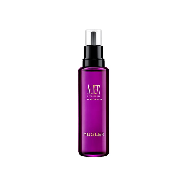 Mugler on panostanut kestävämpään ylellisyyteen jo vuodesta 1992. Alien Hypersense Eau de Parfum -pullot ovat liian kauniita ja arvokkaita heitettäväksi pois käytön jälkeen. Ne on suunniteltu kestämään pitkään 100 ml:n täyttöpullon ansiosta – kapea magentanvärinen pilarimainen pullo sopii kaiken muotoisten pullojen täyttämiseen.