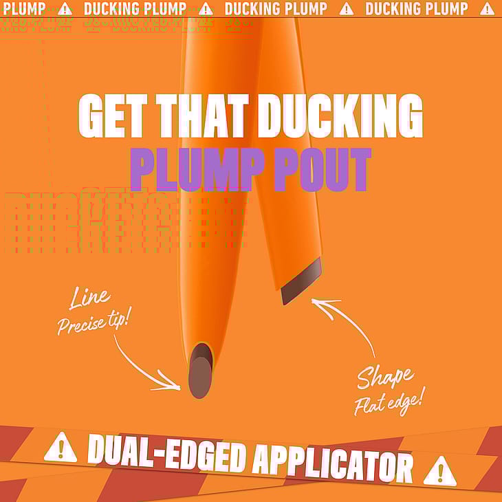 Viistopäinen kärki helpottaa levitystä. Rajaa huulet terävällä päällä ja täytä sitten litteällä päällä luodaksesi täydellisen pulleat huulet. Voit luoda huulille juuri haluamasi muodon. Niin helppoa! Huulikynä antaa huulille täyteläisemmän ilmeen ja korostaa niiden luonnollista muotoa. Koostumus sisältää inkivääriä ja chiliä, aivan kuten suosittu Duck Plump High Pigment Plumping Gloss -huulikiiltomme.