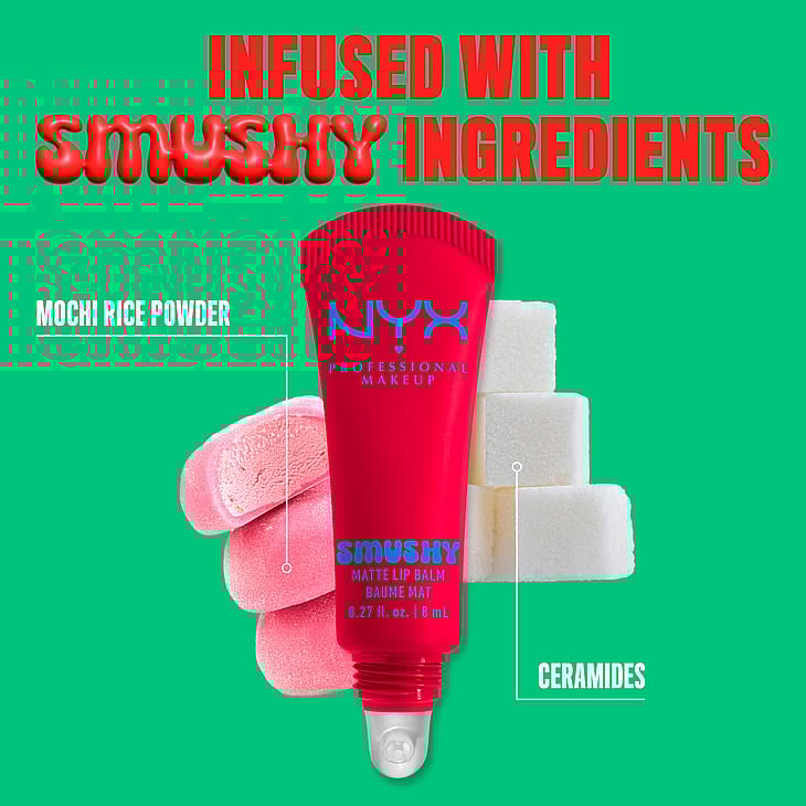 Smushy Matte Lip Balm helposti levitettävä huulivoide antaa huulille mattaisen sävyn ja tuntuu miellyttävältä huulilla. Mochi-riisijauhetta ja keramideja sisältävä vegaaninen koostumus* antaa huulille kevyen pehmeän tunteen sekä utuisen, mattapintaisen lookin.