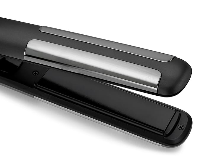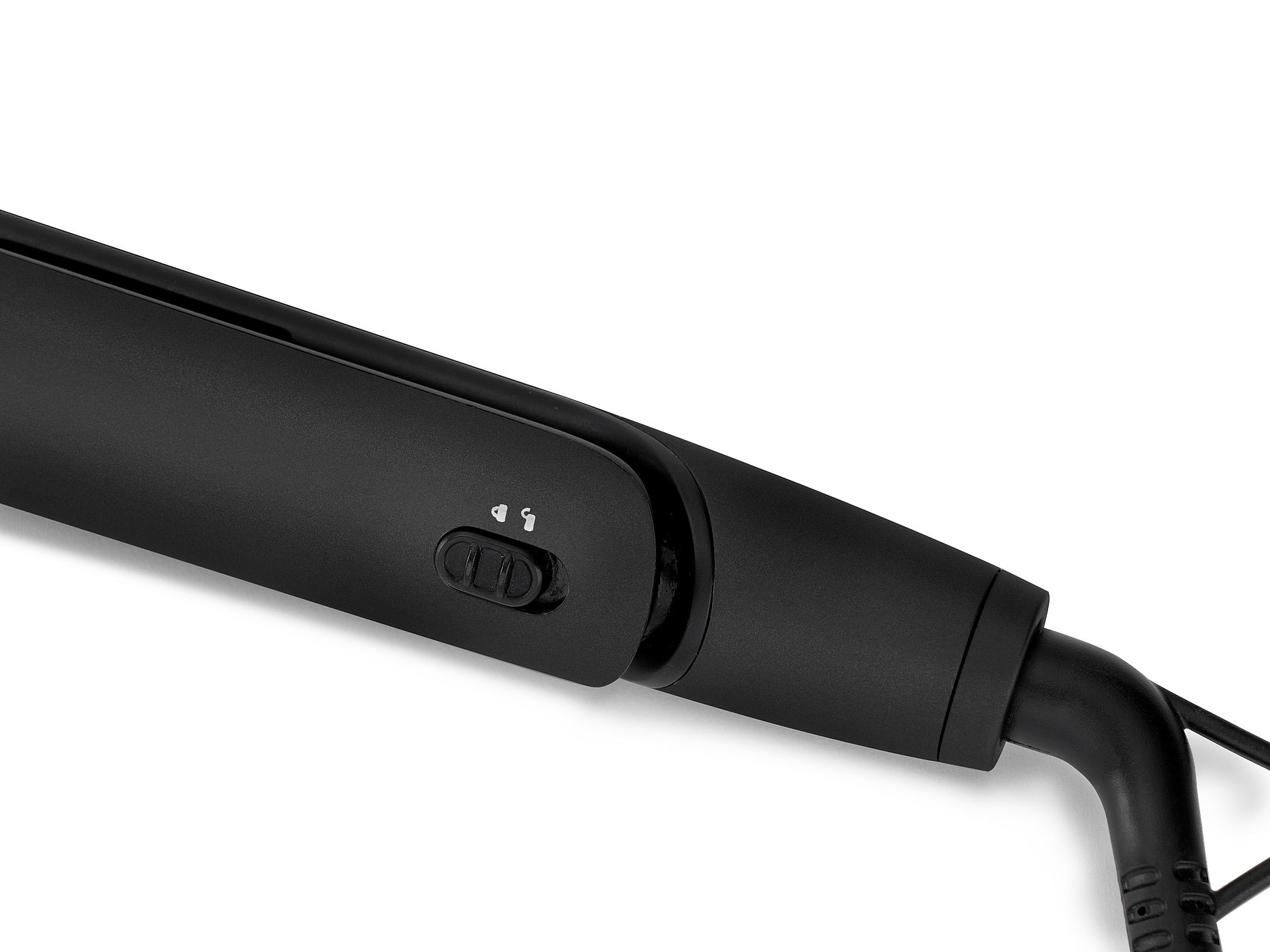 Suoristusraudassa on joustavuuden takaava kolmen metrin mittainen johto, joka yltää helposti pistorasiasta peilin eteen hiusten muotoilun helpottamiseksi. Kun kampaus on valmis ja suoristusrauta on jäähtynyt, voit kiinnittää levyt yhteen kätevän lukitusjärjestelmän avulla, mikä helpottaa suoristusraudan säilyttämistä.