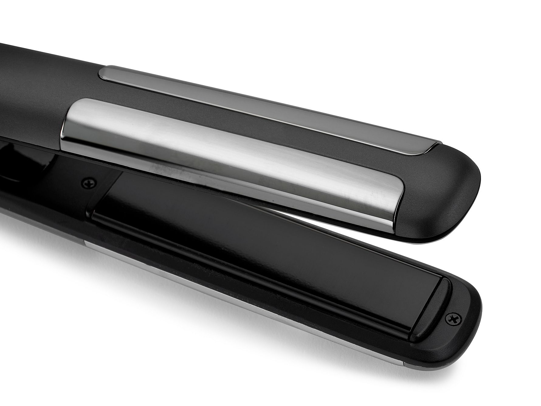 Straight & Curl PRO:n yläosassa on ympäri menevät metallilevyt, jotka helpottavat siistien ja kestävämpien kiharoiden tekemistä. Turvallisuuden varmistamiseksi suoristusrauta sammuu automaattisesti 30 minuutin kuluttua.