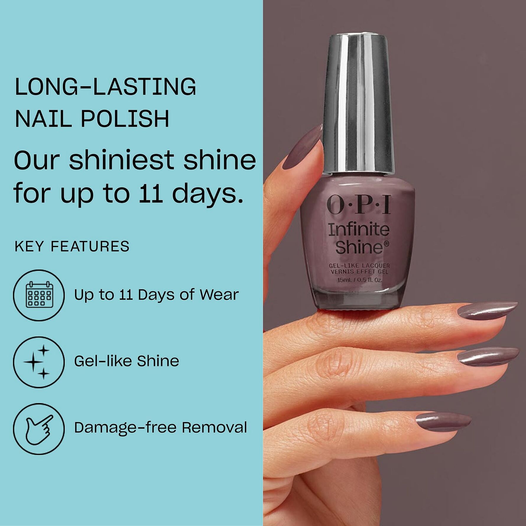 Locks like gel, unlocks like lacquer. OPI esittelee uuden mullistavan Infinite Shine -koostumuksen, jonka teknologia antaa kiiltoa, peittävyyttä ja pitkäaikaista kestoa jopa 11 päiväksi. Geelimäinen koostumus antaa sileän ja tasaisen peittävyyden ilman raitoja tai kuplia. Helppo poistaa asetonilla nopeasti ja vahingoittamatta kynttä. Niin hyvä, että sen luulisi olevan geelilakka. Infinite Shine yhdistää kaiken, mitä rakastat geeli- ja kynsilakassa.