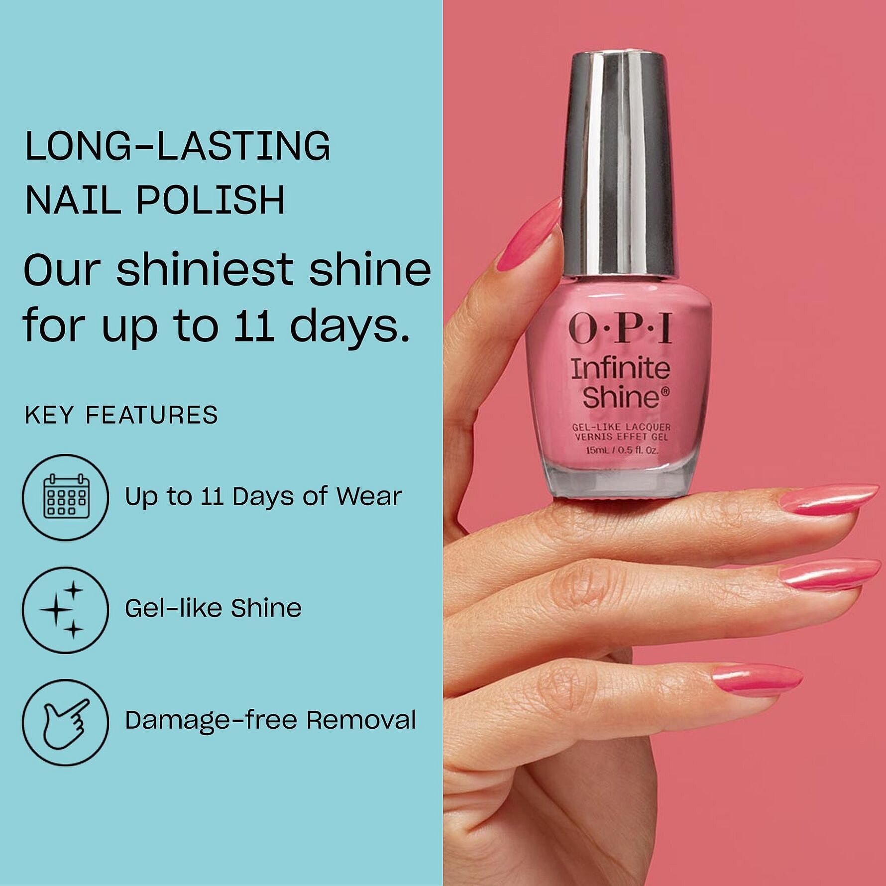 Locks like gel, unlocks like lacquer. OPI esittelee uuden mullistavan Infinite Shine -koostumuksen, jonka teknologia antaa kiiltoa, peittävyyttä ja pitkäaikaista kestoa jopa 11 päiväksi. Geelimäinen koostumus antaa sileän ja tasaisen peittävyyden ilman raitoja tai kuplia. Helppo poistaa asetonilla nopeasti ja vahingoittamatta kynttä. Niin hyvä, että sen luulisi olevan geelilakka. Infinite Shine yhdistää kaiken, mitä rakastat geeli- ja kynsilakassa.