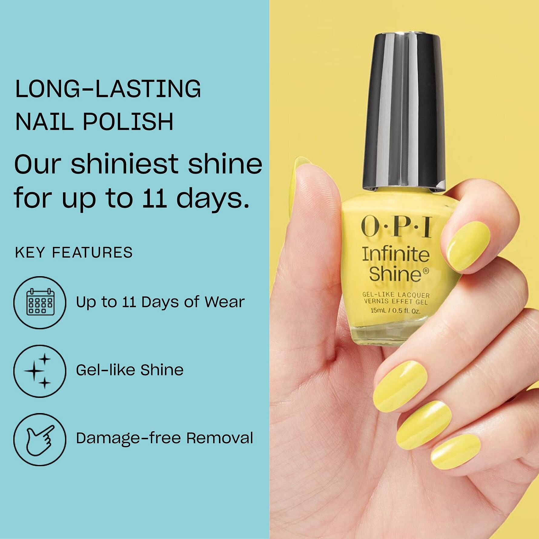 Locks like gel, unlocks like lacquer. OPI esittelee uuden mullistavan Infinite Shine -koostumuksen, jonka teknologia antaa kiiltoa, peittävyyttä ja pitkäaikaista kestoa jopa 11 päiväksi. Geelimäinen koostumus antaa sileän ja tasaisen peittävyyden ilman raitoja tai kuplia. Helppo poistaa asetonilla nopeasti ja vahingoittamatta kynttä. Niin hyvä, että sen luulisi olevan geelilakka. Infinite Shine yhdistää kaiken, mitä rakastat geeli- ja kynsilakassa.