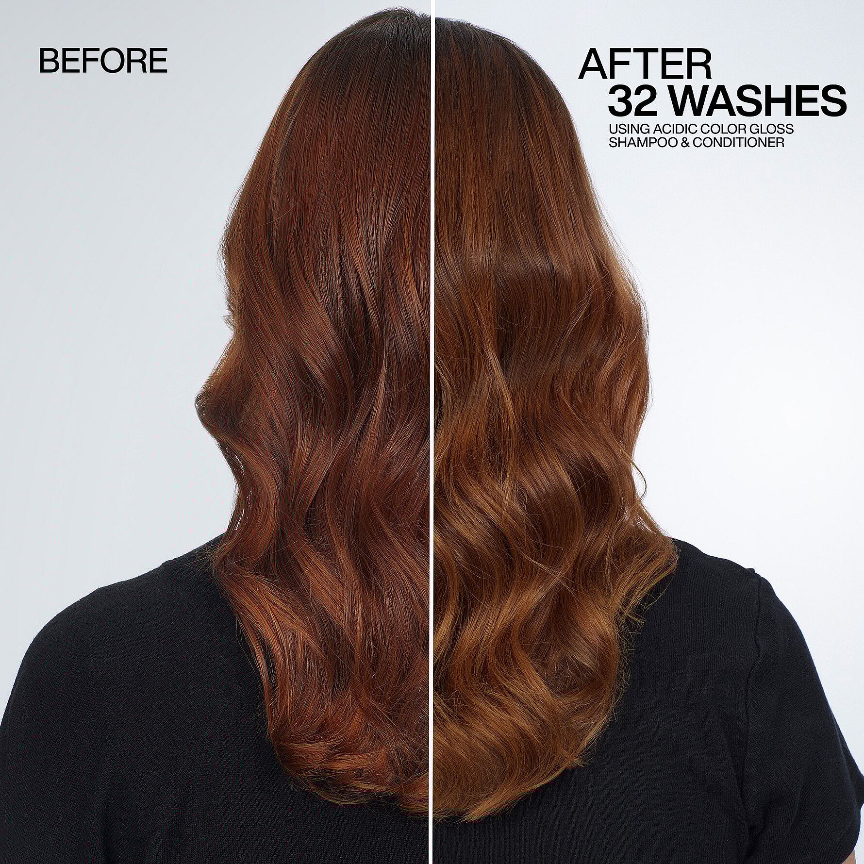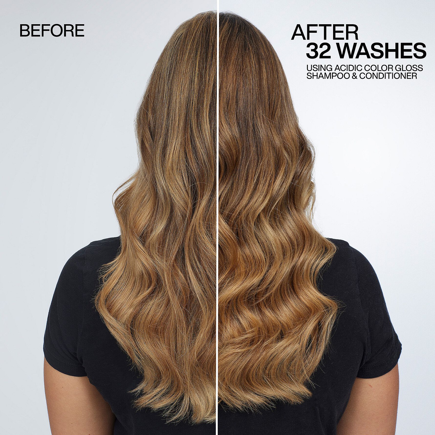 Redken Acidic Color Gloss -shampoo sisältää tehokkaan all-in-one-koostumuksen kiiltoa, sileyttä ja värin suojausta varten.Käynnistä hiustesi kiilto Acidic Color Gloss -shampoolla. Redken Acidic Color Gloss -shampoo on kehitetty tehokkaalla all-in-one-koostumuksella, joka antaa kiiltoa, sileyttä ja suojaa väriä. Tämä ylellinen shampoo auttaa pidentämään värjäystulosta ja kampaamotason kiiltoa kaikille hiustyypeille. Sisältää edistyneen pH-teknologian ja E-vitamiinia, ja sen hapan koostumus sulkee hiusten pintakerroksen ja jättää hiukset kiiltäviksi - Antaa hiuksille välittömästi elinvoimaa. Tämä pH-arvoa tasapainottava shampoo on erityisesti suunniteltu pidentämään hiusvärin eloisuutta ja säilyttämään niiden kiilto. Lopputulos? Hiukset näyttävät ja tuntuvat eloisilta, kiiltäviltä ja hyvinvoivilta!