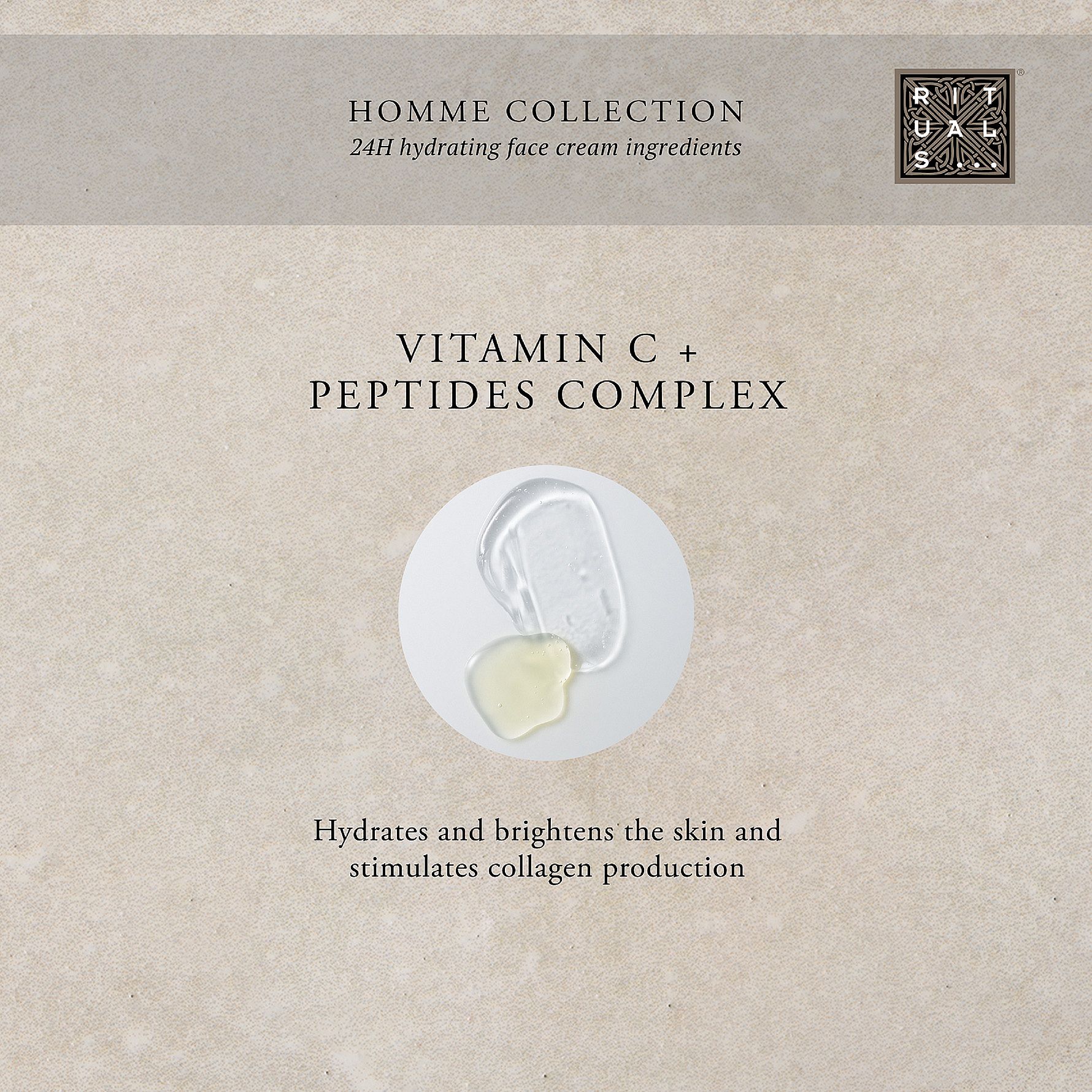 Homme 24-h Hydrating Face Cream on upea kosteuttava voide ihon erityistarpeisiin. Ihoa silottavaa C-vitamiini-peptidiyhdistettä sisältävä monipuolinen kosteusvoide kosteuttaa ja virkistää ihoa antaen elinvoimaa.