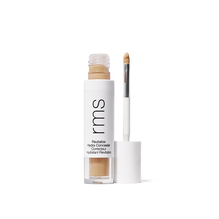 Korkeatehoinen peitevoide, jossa on keskitason peittävyys, joka tehokkaasti sävynkorjaa ja peittää epätasaisuudet ja virheet. Se jättää luonnollisen, satiinimaisen pinnan ja sopii kaikille ihotyypeille. Revitalize Hydra Concealer on monipuolinen peitevoide, joka hoitaa ja kosteuttaa ihoa kuin silmänympärysvoide, elvyttäen herkkää ihoa silmien ympärillä ja parantaen sen rakennetta samalla, kun se sävynkorjaa ja peittää tummat silmänaluset, epätasaisuudet ja punoituksen. Sen koostumus on höyhenenkevyt ja kermainen, sulautuen ihoon ilman paakkuuntumista tai asettumista hienoihin juonteisiin ja ihohuokosiin. On kliinisesti todistettu, että innovatiivinen koostumus kosteuttaa ihoa jopa 8 tuntia. Se on sekä hypoallergeeninen että oftalmologisesti testattu ja vähentää hienojen juonteiden näkyvyyttä 30 päivän käytön jälkeen. Peitevoiteessa on kätevä pieni sivellin tarkan levityksen helpottamiseksi, ja se sisältää puhtaita ihonhoitoaineita, kuten ihoa kiinteyttävää Tightenyl™-ainesosaa (luonnollinen vaihtoehto retinolille), pehmentävää skvalaania sekä RMS:n tunnusomaista adaptogeenisten yrttien sekoitusta – pehmeämmän ja kirkkaamman ihon puolesta.