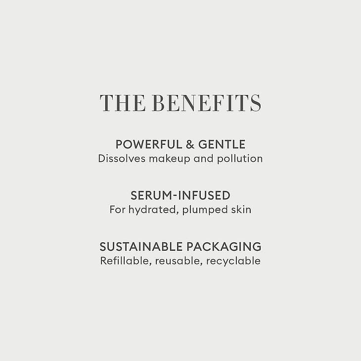 Hiero puhdistusainetta ihoon ja anna sen upeiden ihonhoitoaineiden imeytyä lian ja meikin hajotessa. Pyyhi se sitten pois uudelleenkäytettävällä vanulapulla.