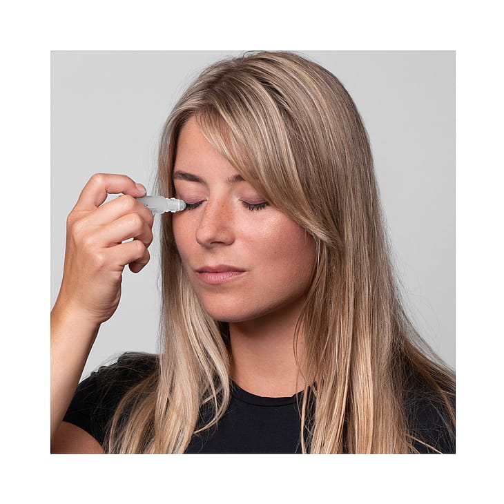 Levitetään puhdistetulle ripsirajalle. Sulje silmät ja liikuta kevyesti seerumin roll-on-päätä ripsirajan päältä lähellä ripsien tyveä. Käytetään aamulla ja illalla.