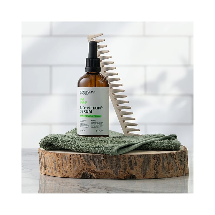 Hiuspohjan seerumi ennenaikaiseen hiustenlähtöön ja kaljuuntumiseen miehille. Scandinavian Biolabs Bio-Pilixin® Activation Serum+ For Men auttaa vähentämään hiustenlähtöä ja tukemaan uusien hiusten kasvua. Hiuspohjaan levitettävä seerumi sisältää tarkkaan valittuja hiusten kasvua edistäviä ja karvatuppea hoitavia luonnollisia kasvutekijöitä. Tutkimuksessa 93 %:lla tutkituista hiustenlähtö väheni 150 päivän jälkeen ja 73 % huomasi hiusten vahvistuneen. Dermatologisesti ja kliinisesti testattu. Kehitetty ja valmistettu Tanskassa.