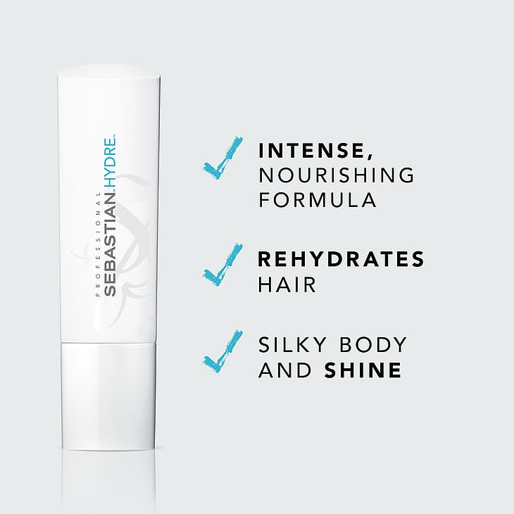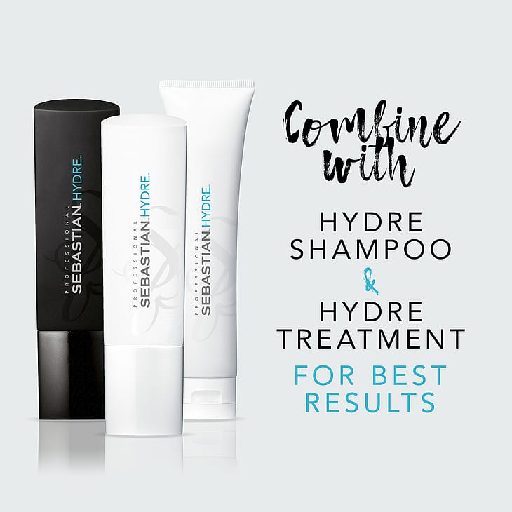 Syväkosteuta kuivuneet ja pörröiset hiukset Sebastian Professional Hydre -hoitoaineella. Tämän syväkosteuttavan hoitoaineen vedestä aktivoituvat ainesosat liukuvat hiusten läpi kosteuttaen ja raviten kemiallisesti käsiteltyjä, kuivia hiuksia. Väriä suojaava Sebastian-hoitoaine selvittää takut hiuksista jättäen ne tuuheiksi ja silkinpehmeästi liikkuviksi.